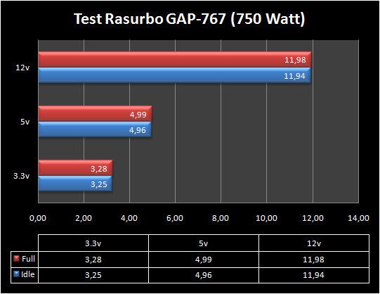 Purtroppo non abbiamo test effettuati dall'EPRI che ci aiuterebbero a capire meglio l'effettiva bontà di questo alimentatore. I valori che vedrete nei grafici sottostanti sono stati presi con un tester direttamente dai connettori liberi (facendo una media tra le varie linee di alimentazione)
