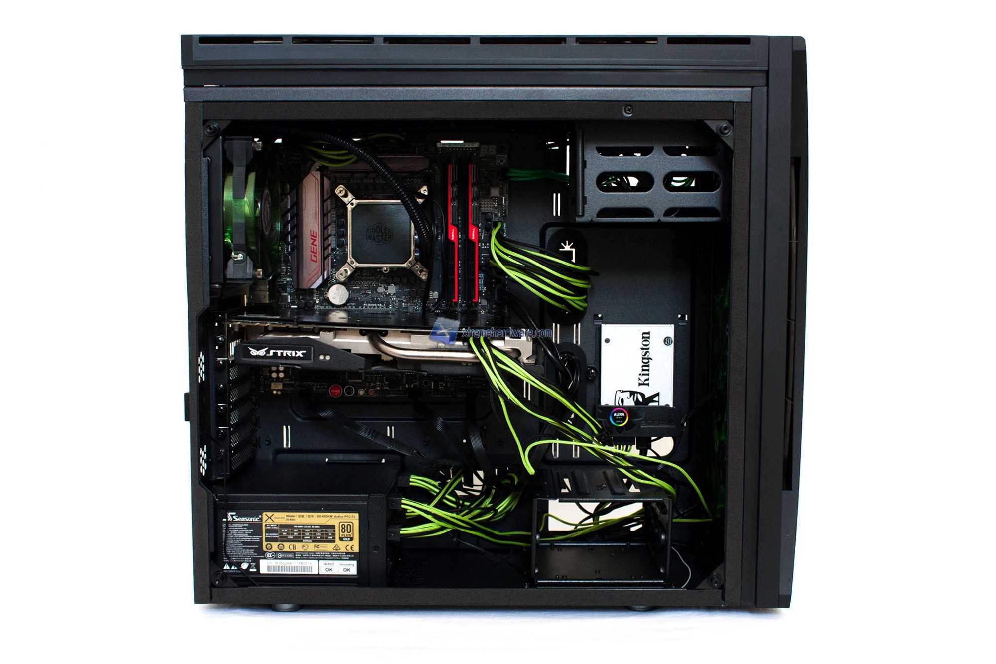 Siamo dunque passati alla fase di installazione dei componenti. L’installazione si è rivelata veloce e pratica e non ha richiesto molto tempo. L’organizzazione dei componenti così come dei cavi è stata valida considerando anche lo spazio di 2-2,5 cm posteriore. Il supporto ad un doppio radiatore da massimo 280 mm permetterà di rimanere in ambiente AIO o passare ad un loop Custom senza troppe esigenze.