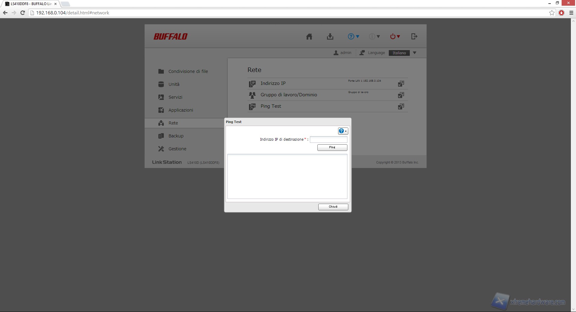 Inseriamo dunque l'Indirizzo IP assegnato all'LS410D nella barra degli indirizzi del nostro browser web ed effettuiamo l'accesso.